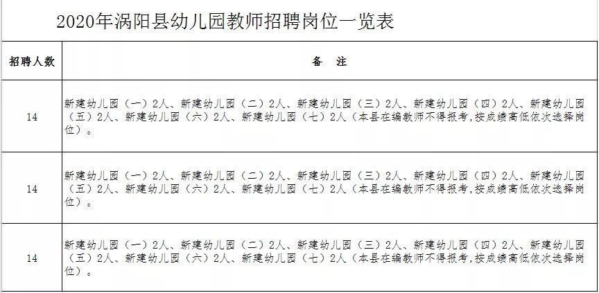 经核准,2020年涡阳县公立幼儿园计划公开招聘新任教师42名。招聘计划(岗位)等信息见附件:《涡阳县2020年公立幼儿园公开招聘教师岗位一览表》。