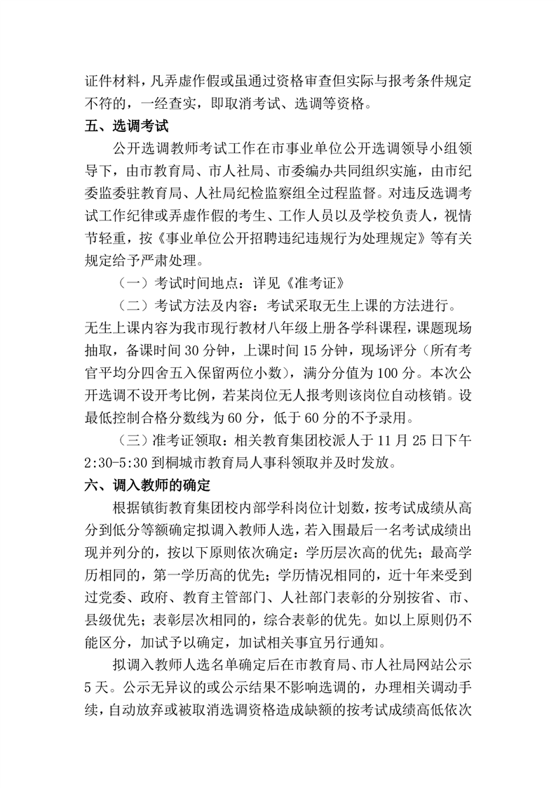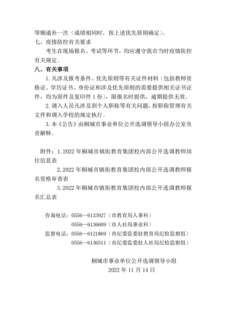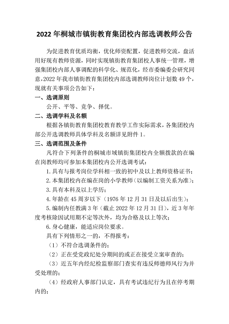 2022年安庆桐城市镇街教育集团校内部选调教师公告