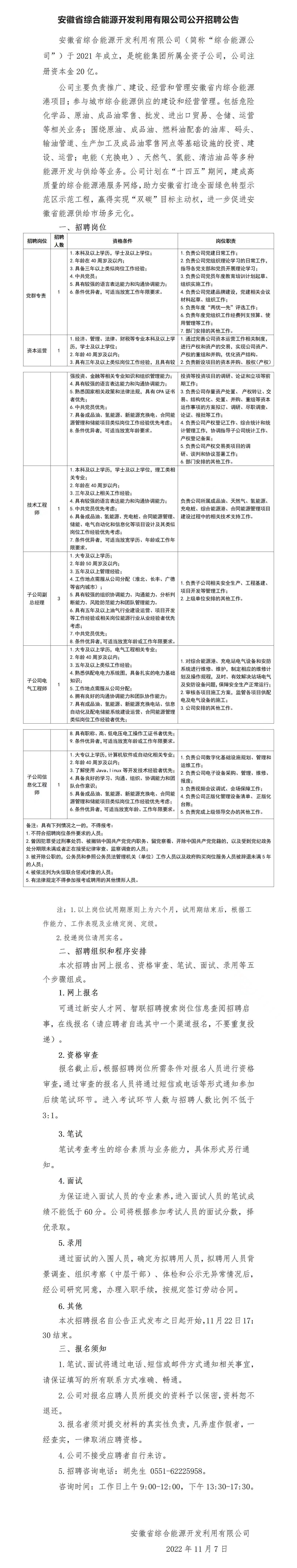 2022年安徽省综合能源开发利用有限公司公开招聘公告