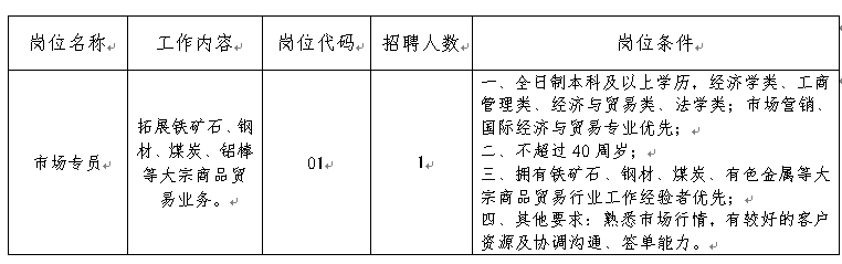 铜陵市建投商贸有限责任公司于2018年4月26日注册成立,为铜陵市国有企业。现因业务发展需要,面向社会招聘劳务派遣工作人员1名。具体事项公告如下:
