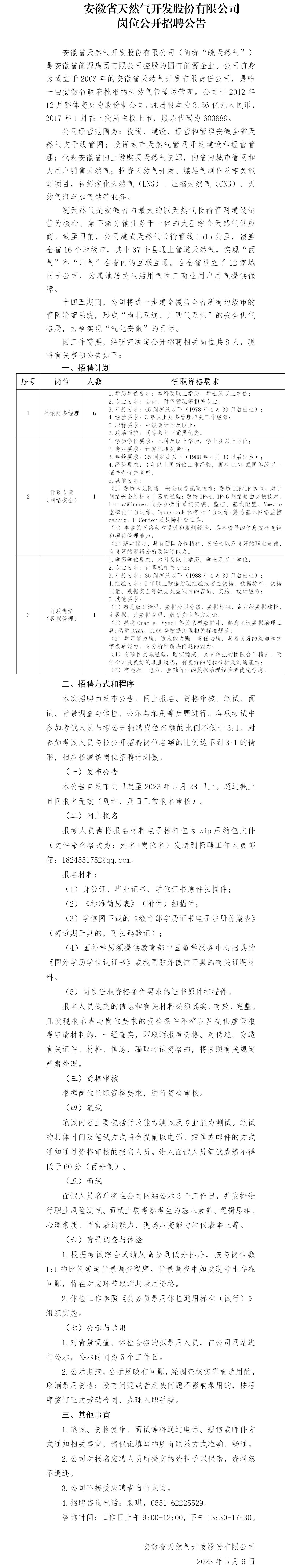 2023年安徽省天然气开发股份有限公司岗位公开招聘公告