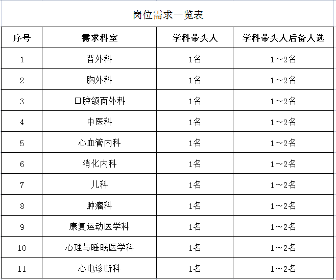 (3)职称:临床科室具有卫生系列和教学系列正高职称,医技科室具有卫生系列正高职称、教学系列副高职称。