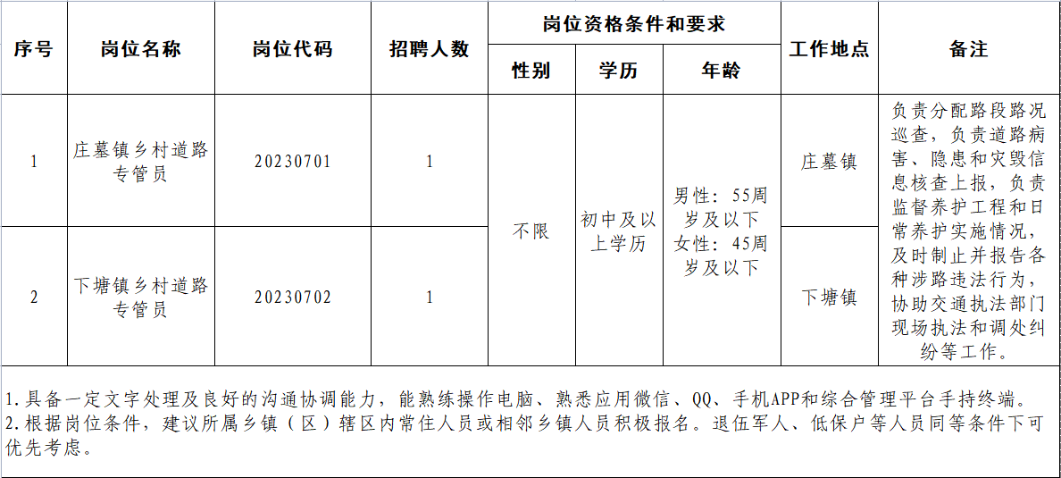 2、岗位及要求中“年龄”“55周岁及以下”为“1967年8月1日(含)以后出生”。“45周岁及以下”为“1977年8月1日(含)以后出生”。