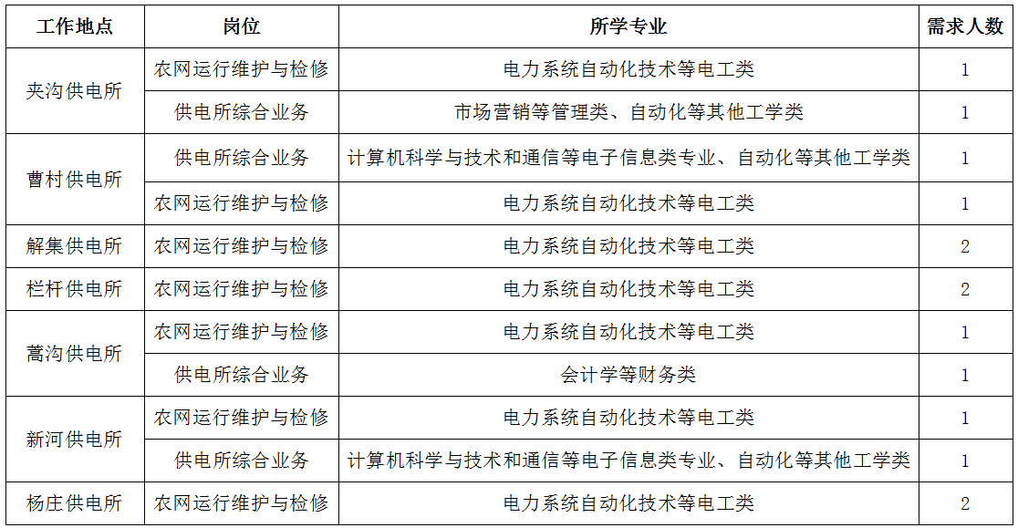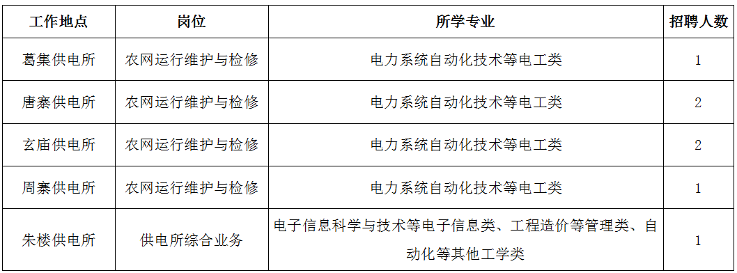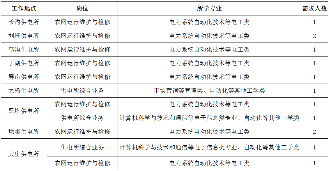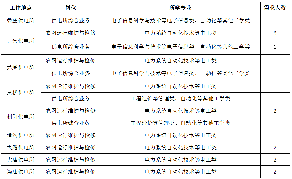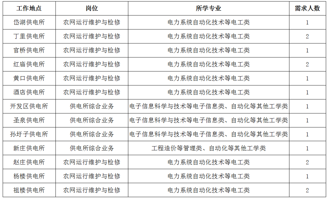 3.电工类专业为全日制大专及以上学历毕业生,其他专业为全日制本科及以上学历毕业生。