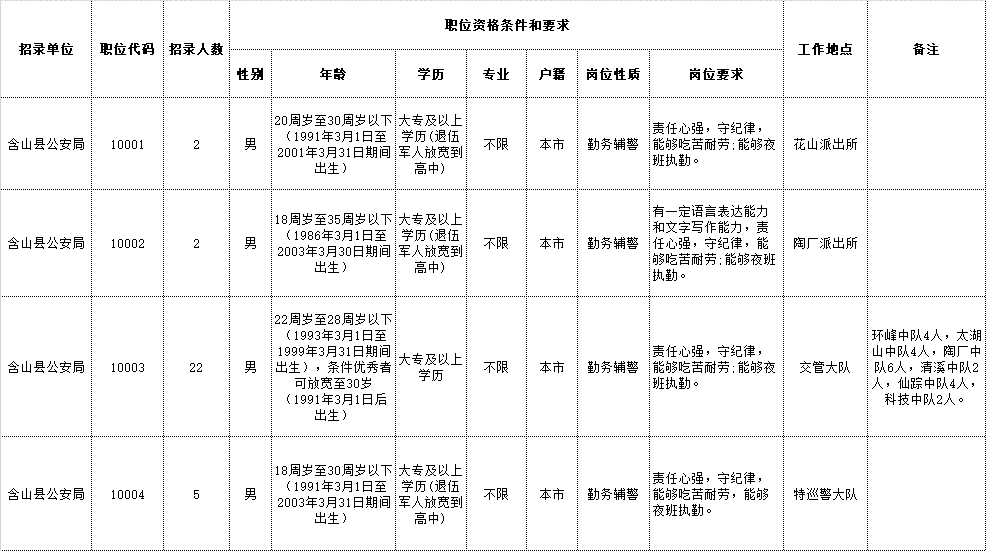 2021年马鞍山市公安局含山片区招聘警务辅助人员职位表